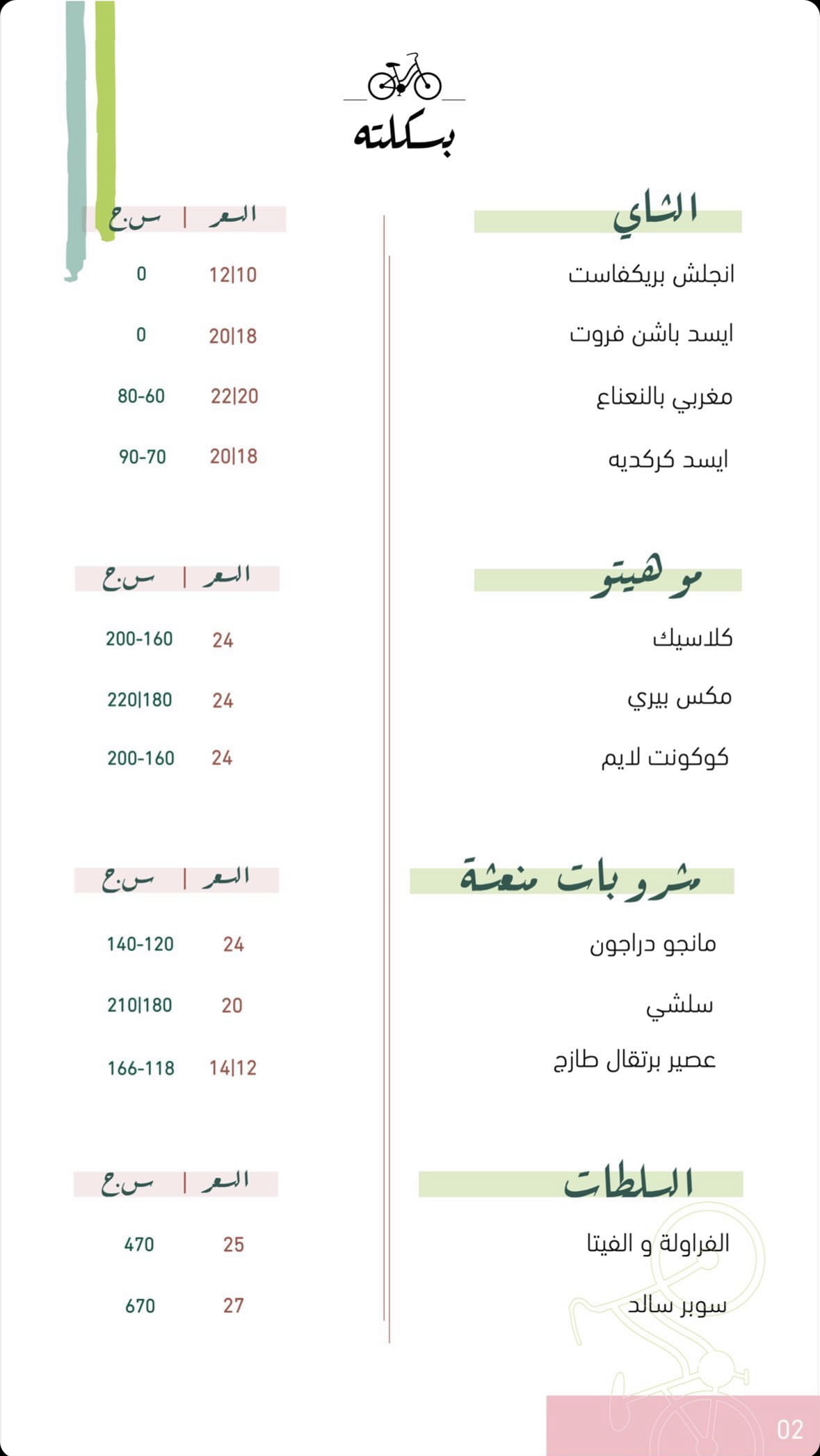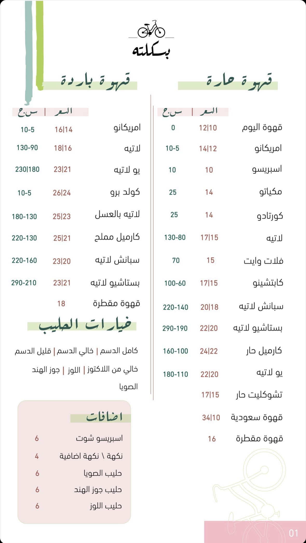 منيو كافيه بسكلته الطائف