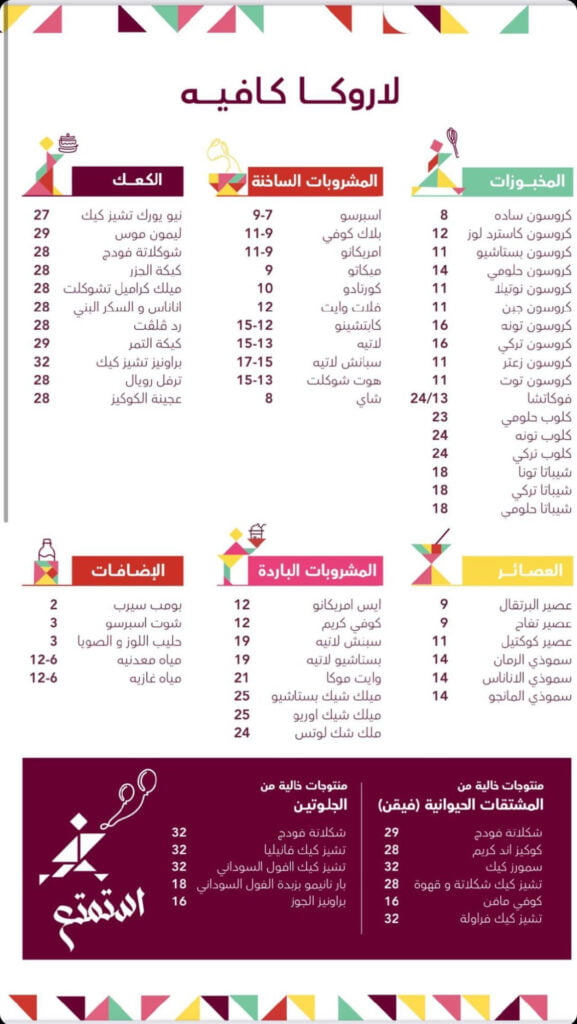 منيو كافيه لاروكا الطائف