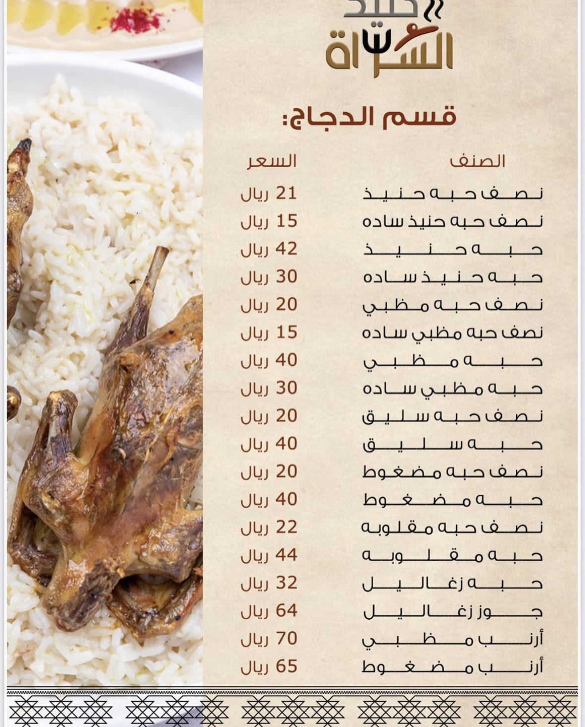 منيو مطعم حنيذ السراة الطائف