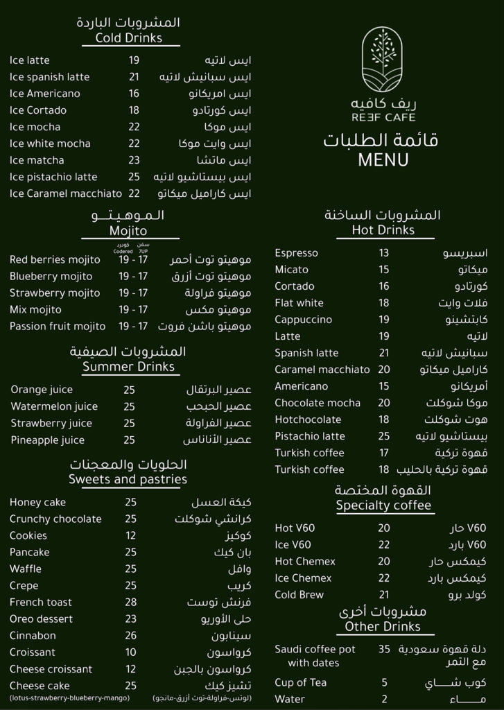 منيو ريف كافيه الشفا