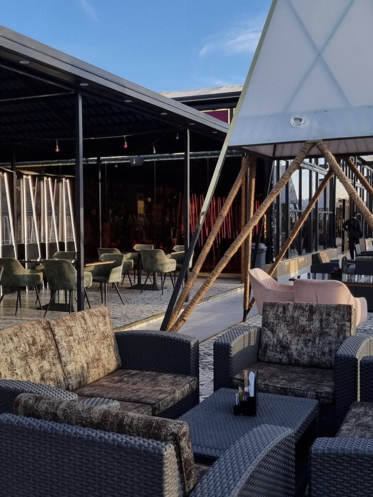 التصميم: يوجد قسمين مقهى ومطعم المساحة واسعة والطاولات عديدة