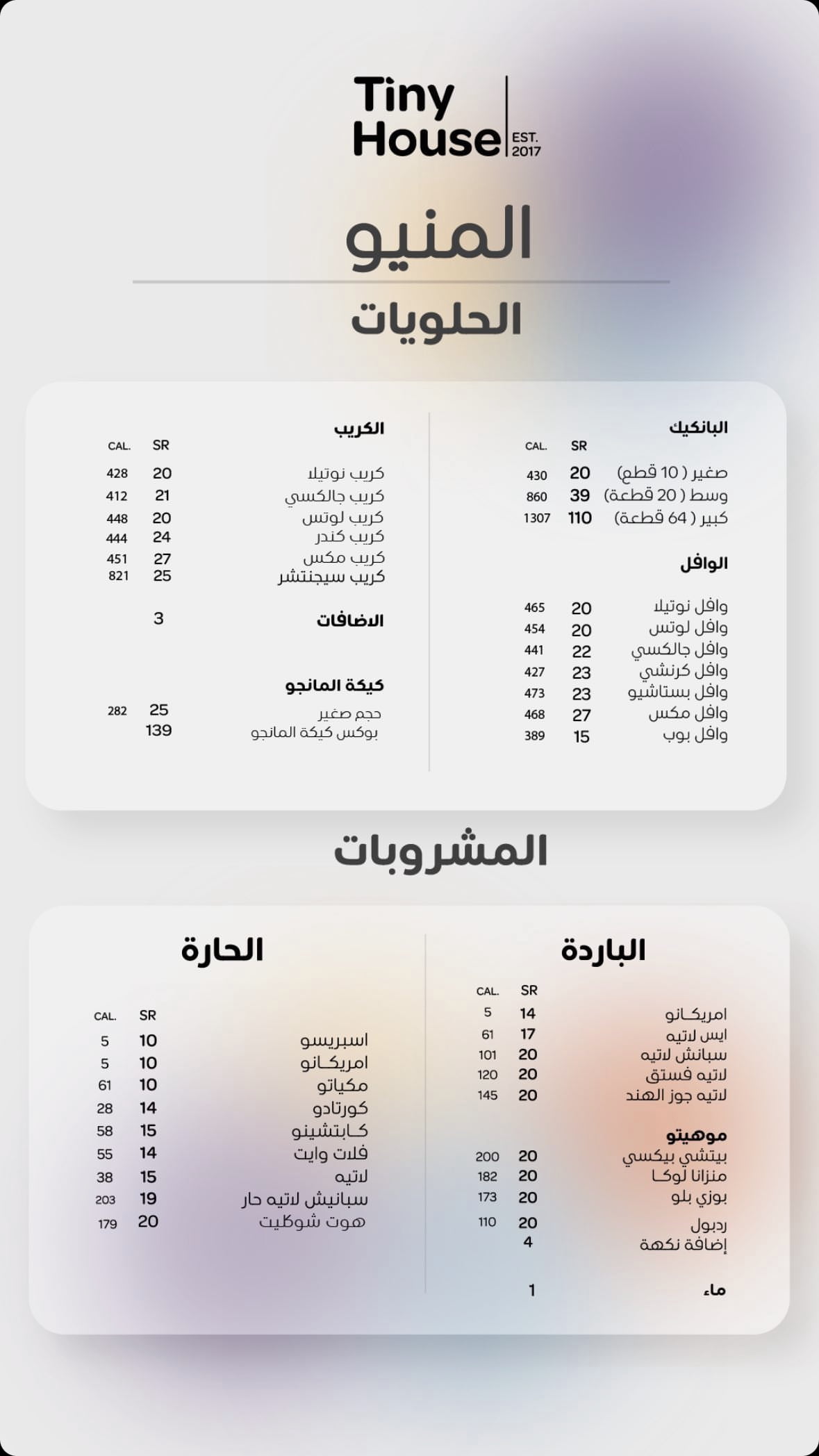 منيو كافيه تايني هاوس الطائف