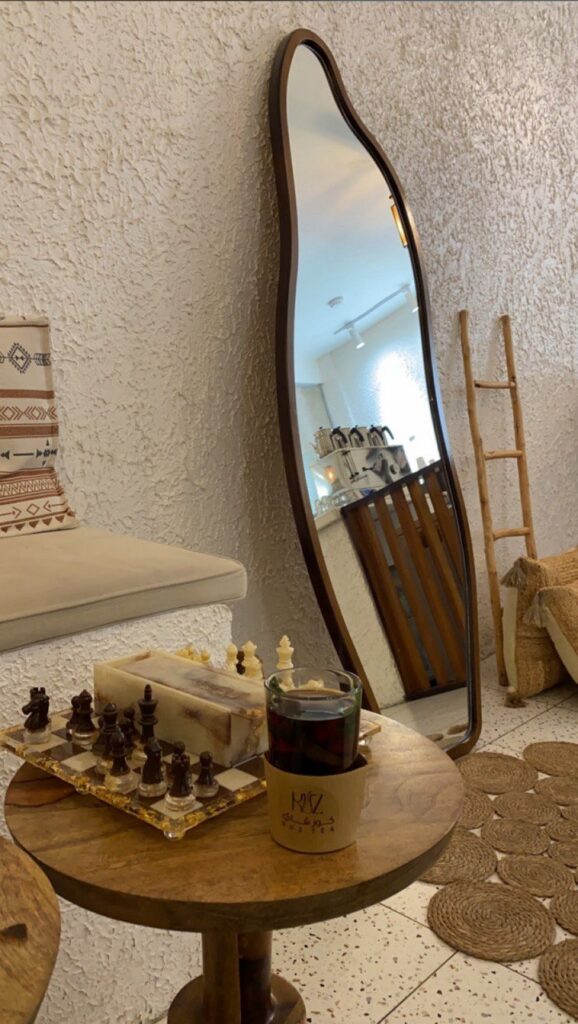 المكان جميل جدا ورايق ، عندهم عدة نكهات للشاي المنيو فيه تشكيلة كبيرة من الشاي والماتشا والقهوة المقطرة والقهوة السعوديه والتركية وانواع من الفطائر والكوروسان ، الطاوله عبارة عن كيرم للعب كما يوجد انواع من الالعاب والمسليات اشكر صاحبة المحل دلال الحارثي على ذوقها واستضافتها اللطيفة