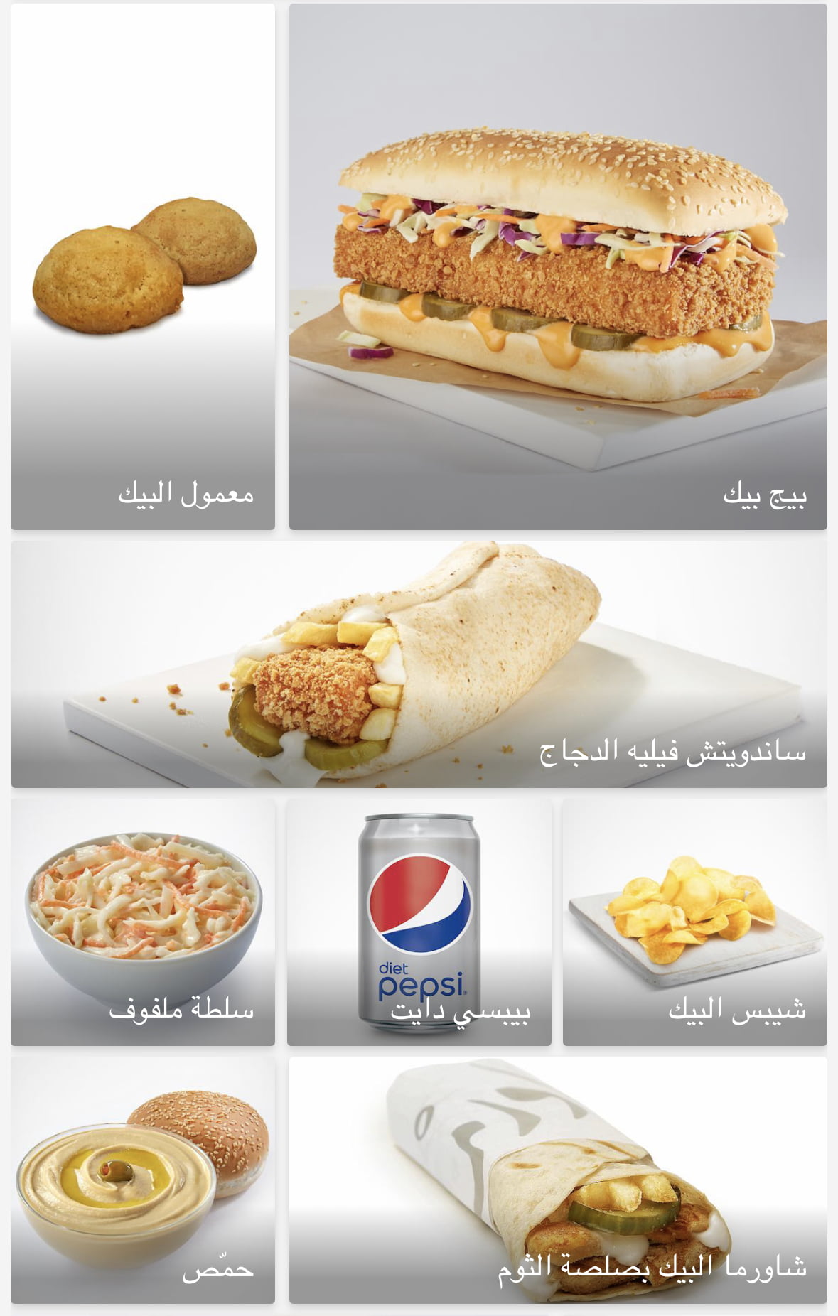 *فرع الشرقية يُقدم فقط ساندويتشات البيك، ولا يُقدم صحون المسحب والبروست