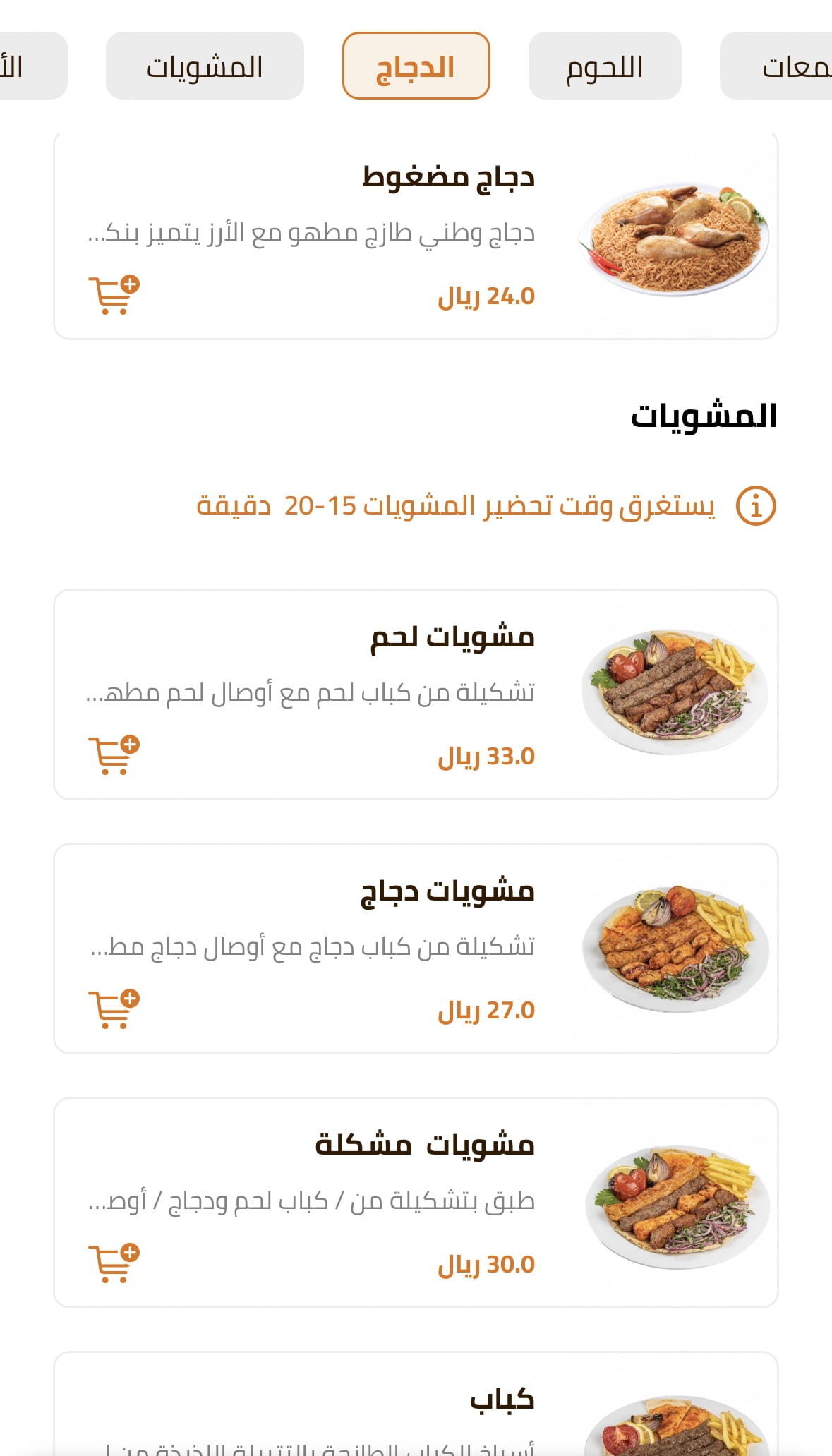 تم اخذ وجبة دجاج مضغوط الطعم جيد بخصوص استلام الطلب هناك تأخير وتم اخذ برياني الطعم جيد اما اخذت دجاج مظبي الدجاج غير مستوي بدم المقلوبه غير جيده والخدمه في المحلي سيئه جدا افضل ماعندهم الشوربه فرق بين فرع الرياض وجده هذا بس شكل وديكور اما جودة الاكل الدجاج ماانصح فيه اللحم مااخذت منهم الى الان مطعم فوق السيء طلبت مندي انتظرت فوق نص ساعه يوم وصل الدور يقول مافي الا مدفون لحم جد اسوء فرع رومانسية في المملكه حتى نجمه حرام فيه