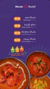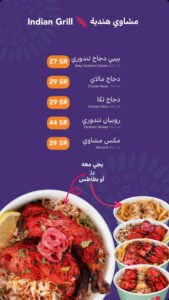 الاكل سعره ارخص بكثير عن المطاعم الهنديه الثانيه لكن بالمقابل كميه اللحم قليله بس بتتعوض بكميات الرز و الصوصات وكذا