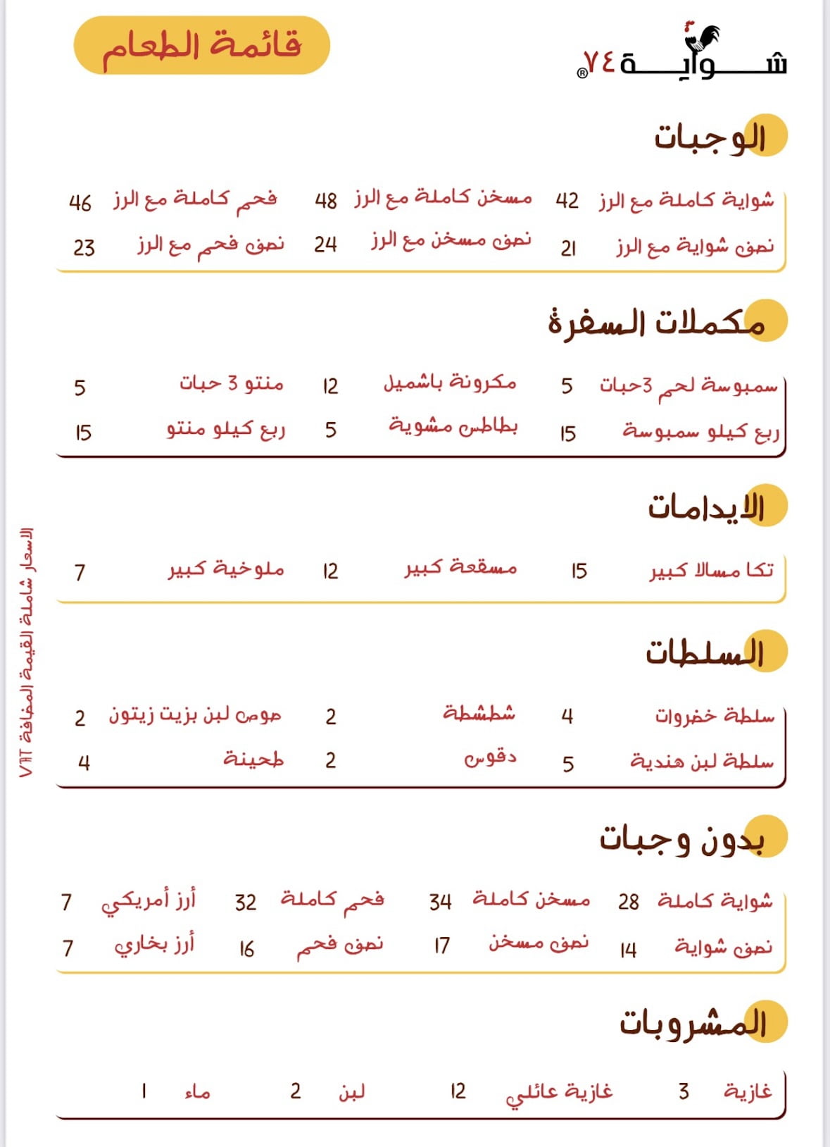 منيو مطعم شواية 74 الطائف